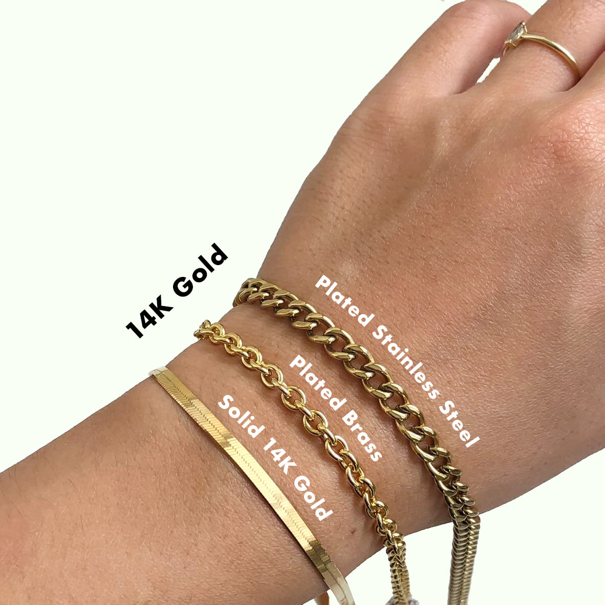 We only use 316L stainless steel, a superior choice for jewelry since it resists general corrosion. Stainless steel in its original color (silver) will maintain that color for life. For maximum durability, we use PVD coating for our gold finish, the same coating used for gold stainless steel watchmaking. However, due to the nature of this metal, both gold and silver colors usually look a bit duller or darker compared to other common metals. Therefore, we love using this metal as a supportive material to pair with beads or CZ crystals, creating pool-friendly styles that are both affordable and practical:)