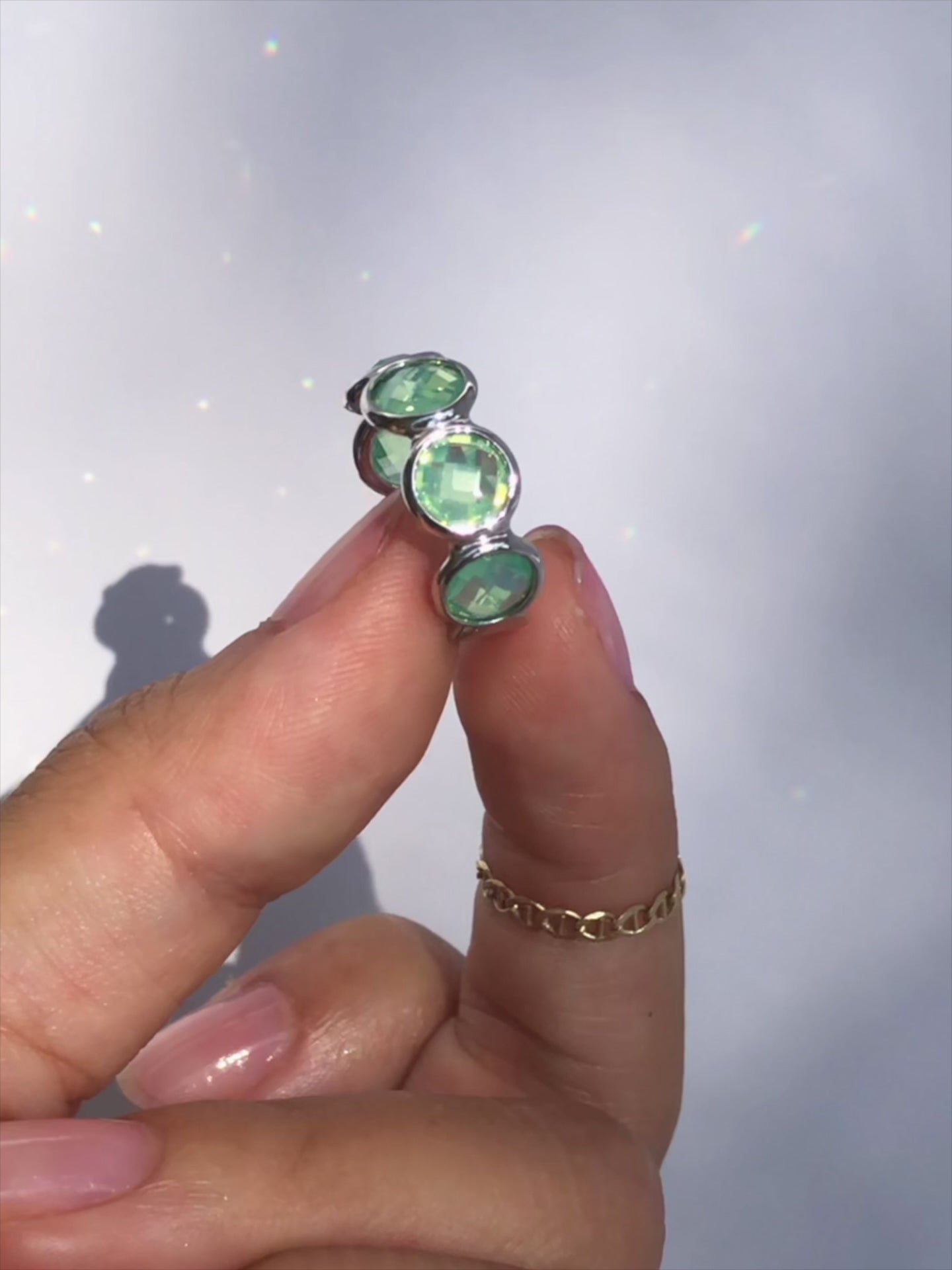 - Rhodium PVD plated brass + baby blue opal CZ stones