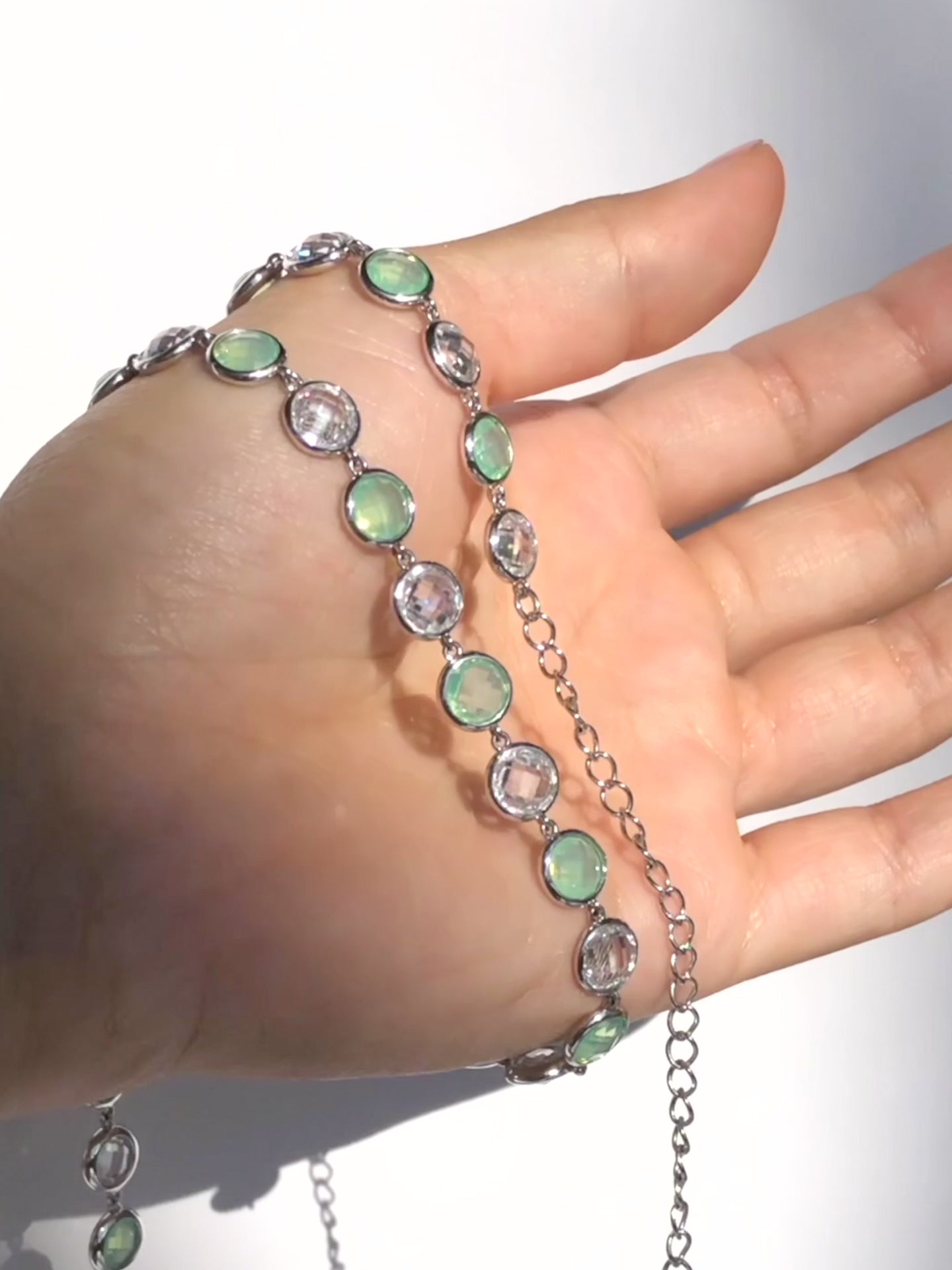 This Baby Blue Necklace #2 will be sure to add a touch of sky-born sparkle to any special occasion. Featuring vibrant blue opal crystals paired with clear crystals, this timeless piece is boldly finished with thick rhodium plated on the settings. Let this necklace's brilliance transport you to a world of timeless glamour and luxury. Layer it with our dainty Baby Blue Necklace #1, or complete the look with our other Baby Blue pieces :)