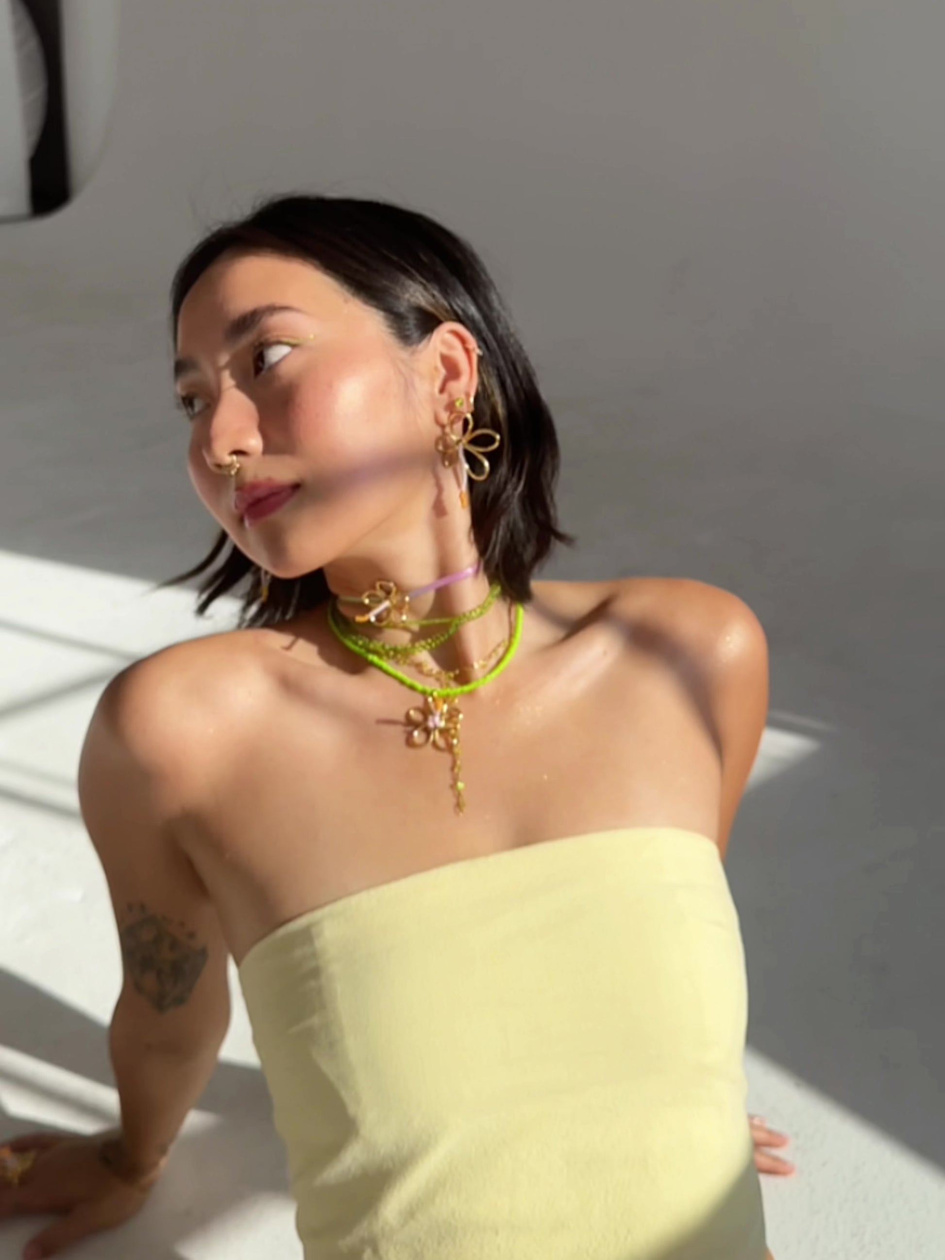 This Blossom Necklace will take you back to your childhood days of colorful beaded jewelry and wildflowers. Handcrafted with playful Japanese ceramics and glass beads, the flower pendant is slightly curved for a lively, vibrant look. It's a casual and cool piece for those who want to add a splash of fun to any ensemble. Pair it with our Big Blossom Earrings or complete the look with our other Blossom pieces for a head-turning, carefree vacation state of mind :)