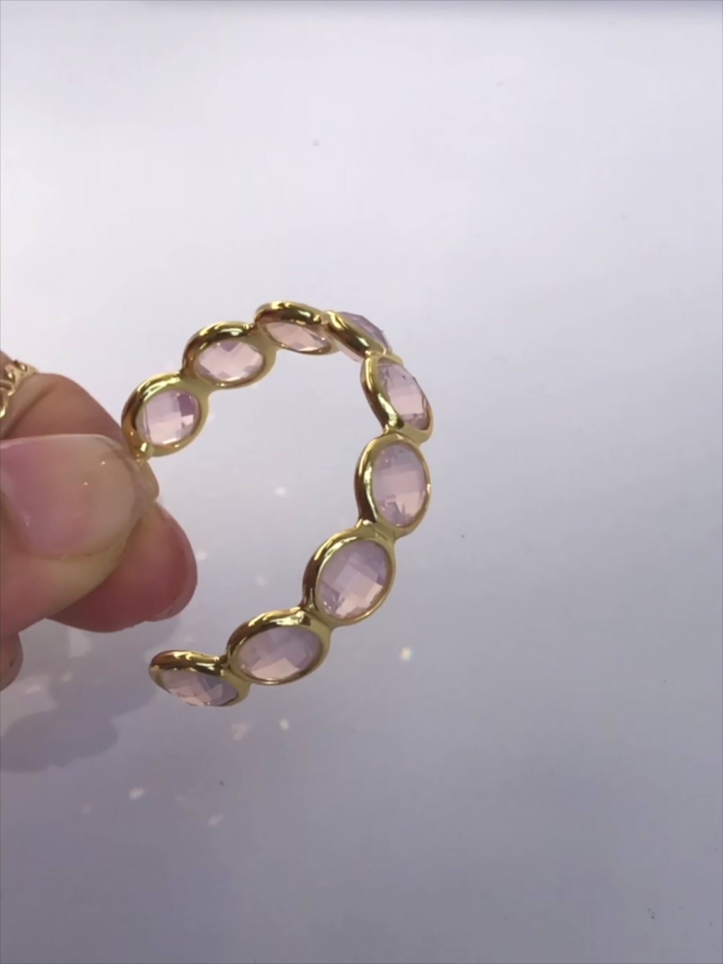 - 14K gold-vermeil-plated brass + baby pink opal cubic zirconia stones