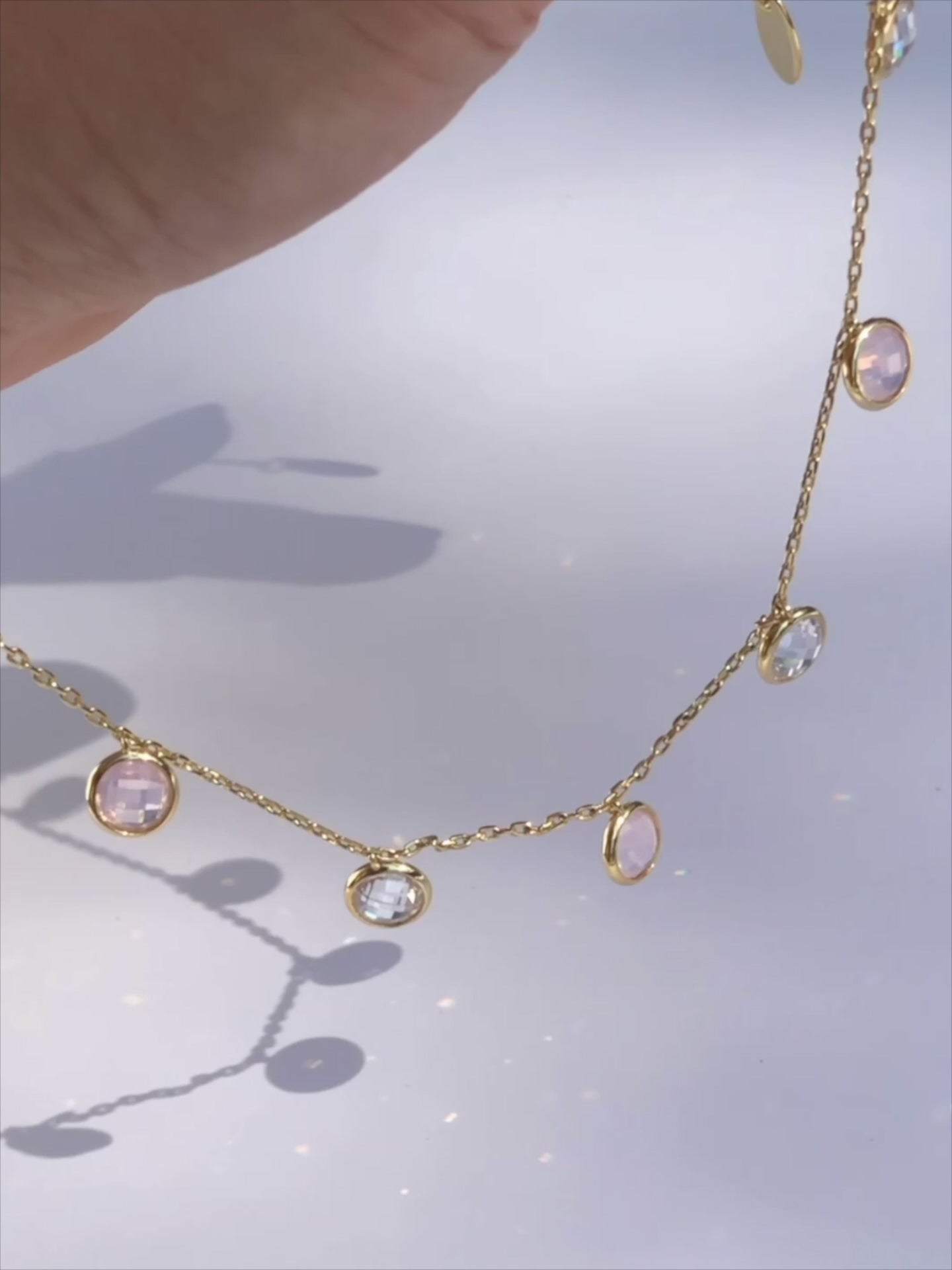 - 14K gold-vermeil-plated brass + clear and baby pink opal cubic zirconia stones