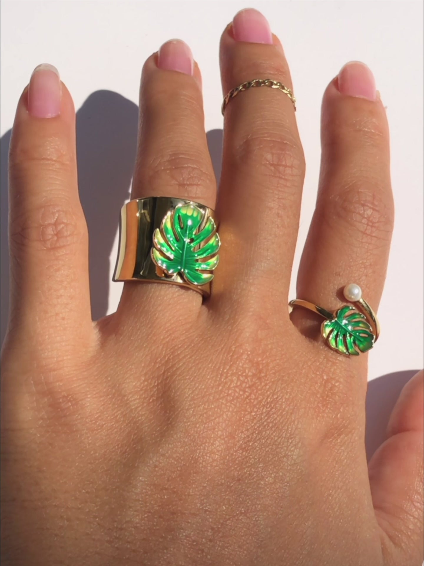 Take your outfit to a tropical paradise with our Chunky Tropical Ring! Its 14k gold-finish plus hand-painted Monstera leaf enamel bring class to your look while taking it to another level of sultry, island-style glam! Be sure to complete the tropical ensemble with our other Paradise pieces :)