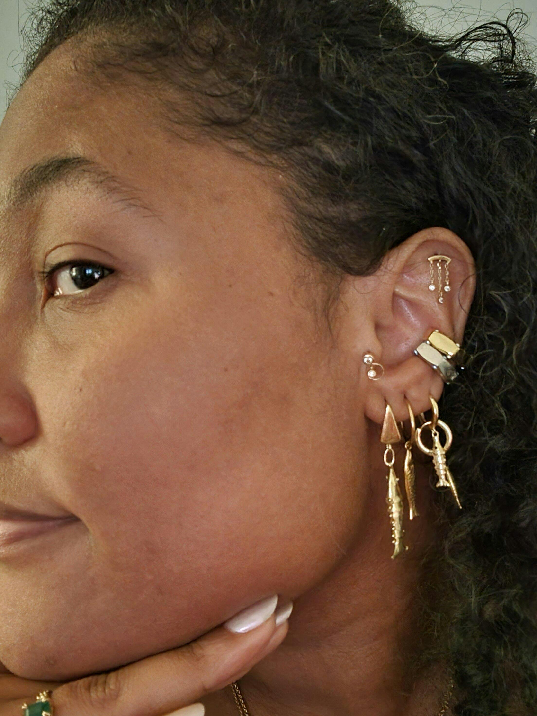 Its sleek, ear-hugging shape makes a striking statement while staying effortlessly in place. Perfect for adding an industrial edge to any look, it’s designed for those who appreciate both form and function.