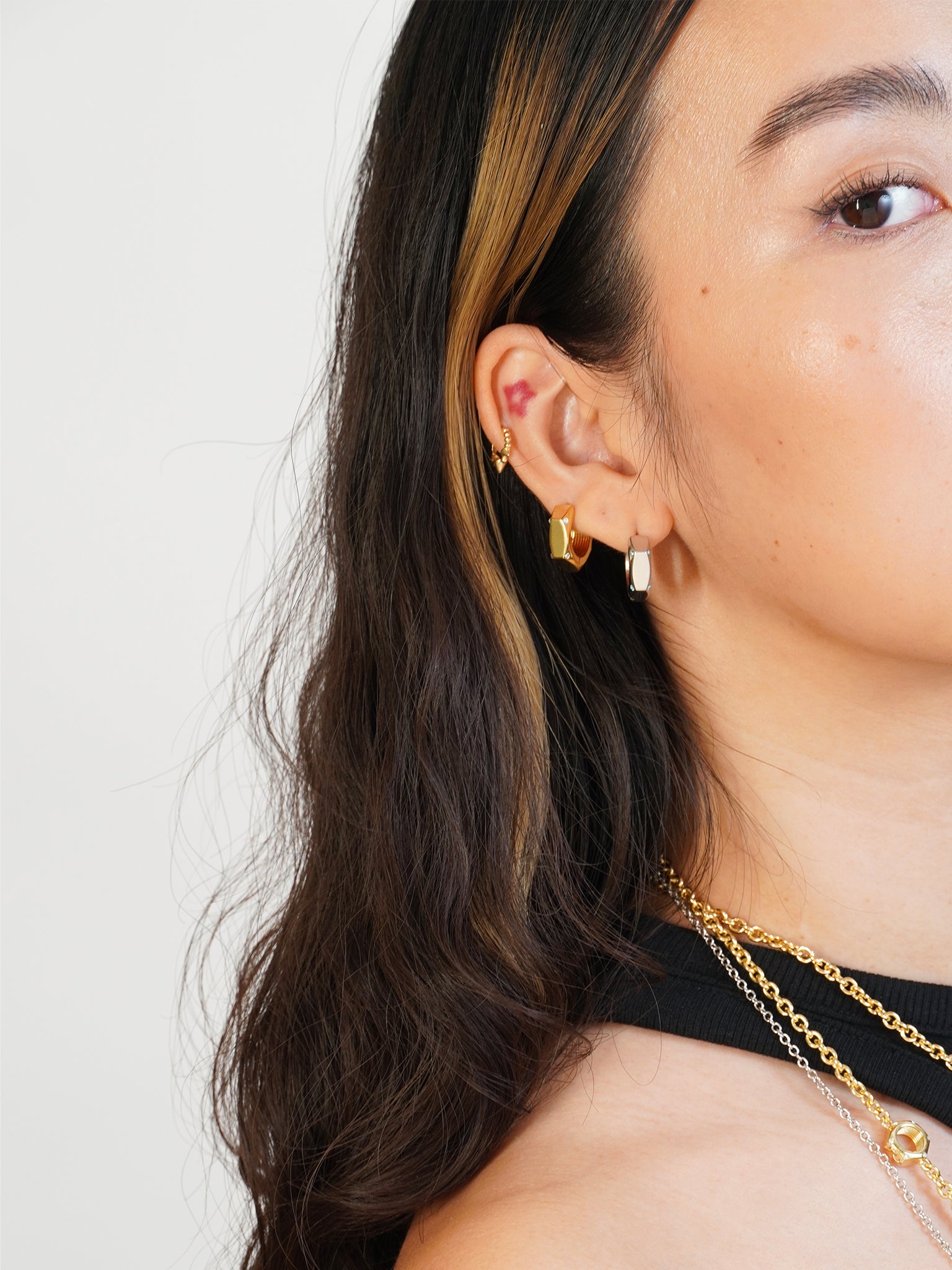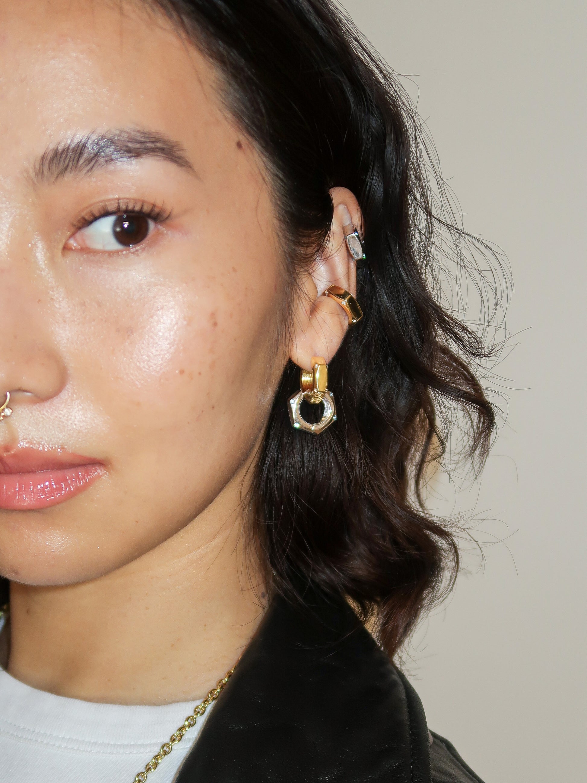 My favorite part of this design: the opening width is perfectly aligned with the hoop’s thickness, allowing you to link them together and create a bold double hex nut earring. It’s a playful reminder of how small details can come together to make something truly impactful.
