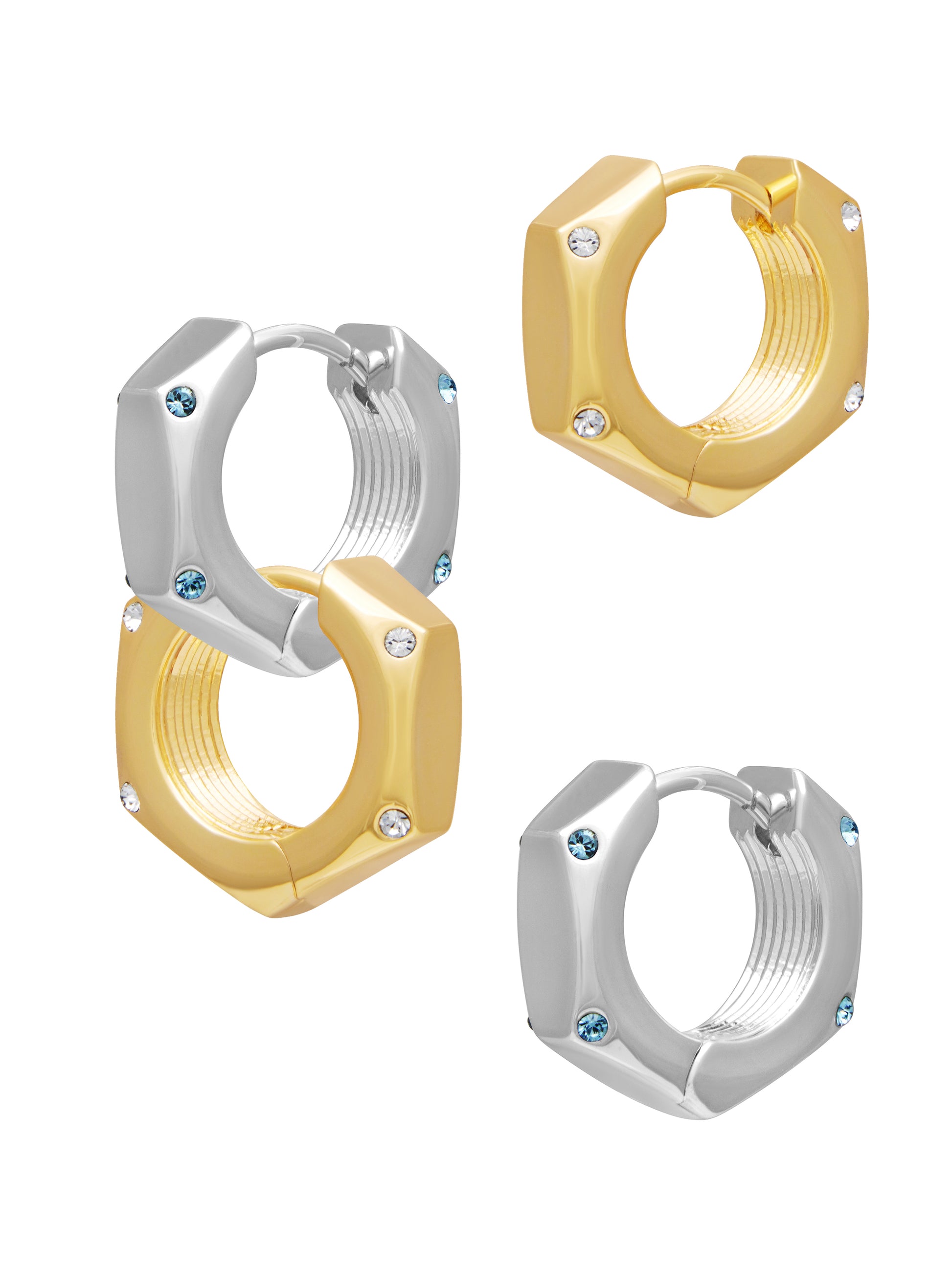 These earrings are a must-have! The Link-Up Hex Nut Huggie Earrings take the humble hex nut and transform it into an everyday statement piece, with a high-polished mirror shine accented by Swarovski® crystals.