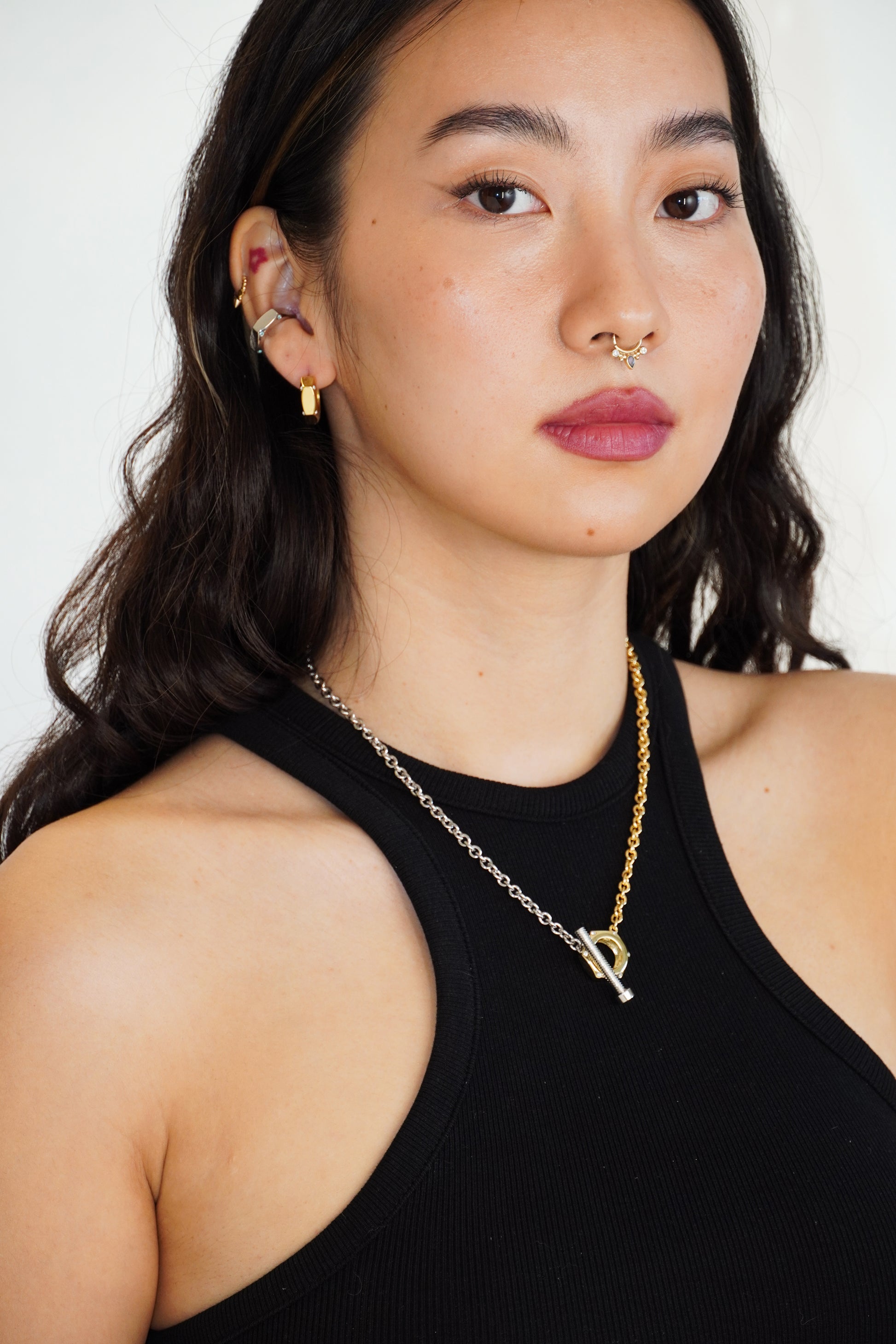 Time to mix and match! This bundle includes the bold Link-Up Hex Nut Huggie Earrings and the sleek Hex Nut Ear Cuff—both inspired by the humble hex nut and designed to add industrial edge to your look.