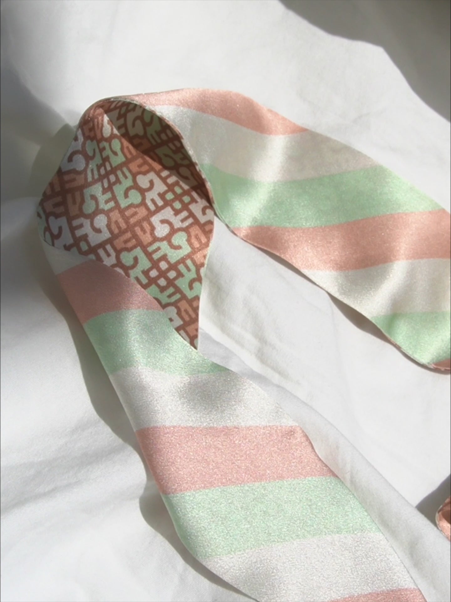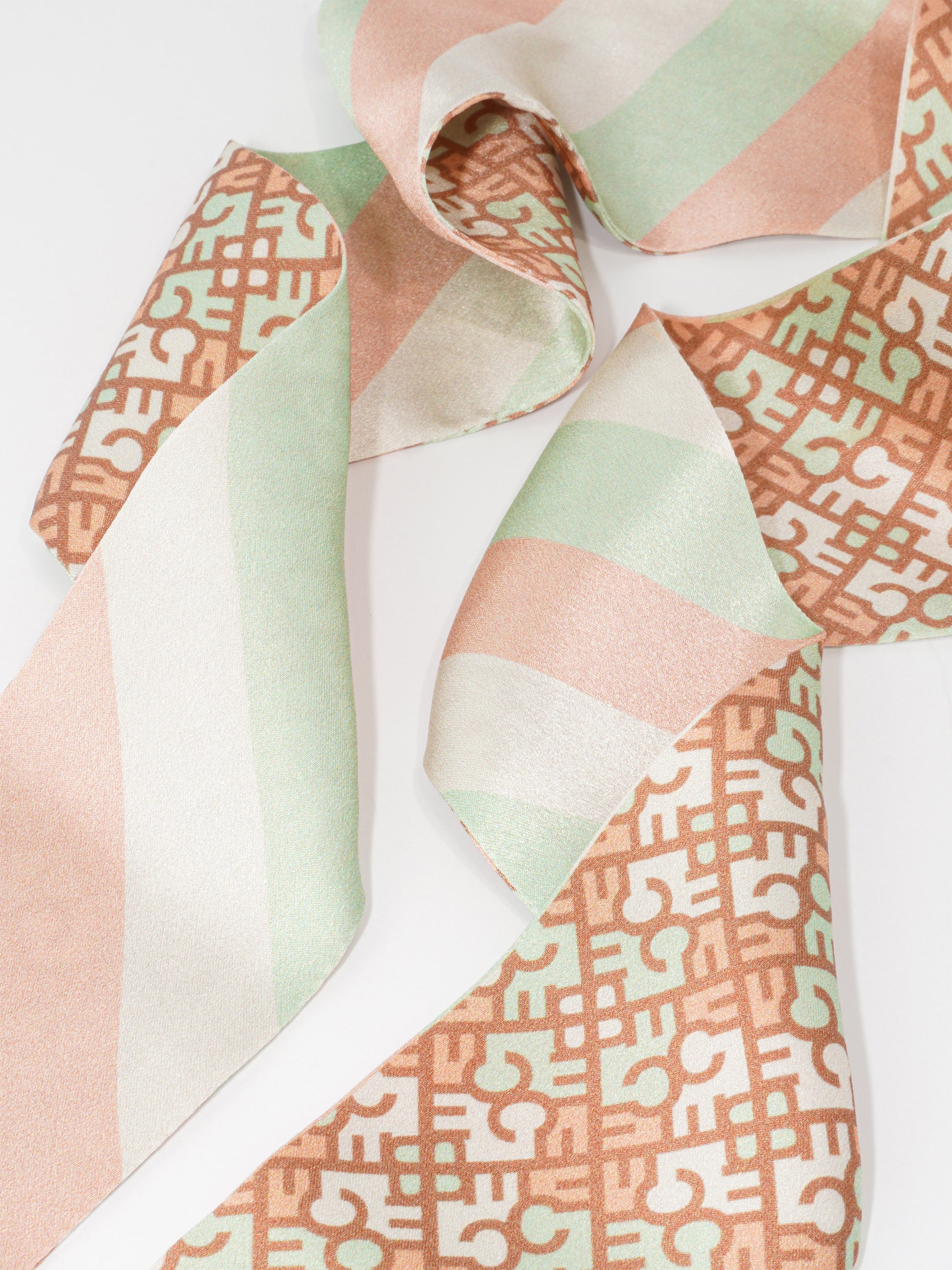 Made from 100% silk and printed on both sides, this retro-inspired scarf features our playful monogram on one side and bold, classic stripes on the other. Tie it around your neck, wrap it in your hair, loop it onto your bag—or wherever you feel like adding a soft touch of character.