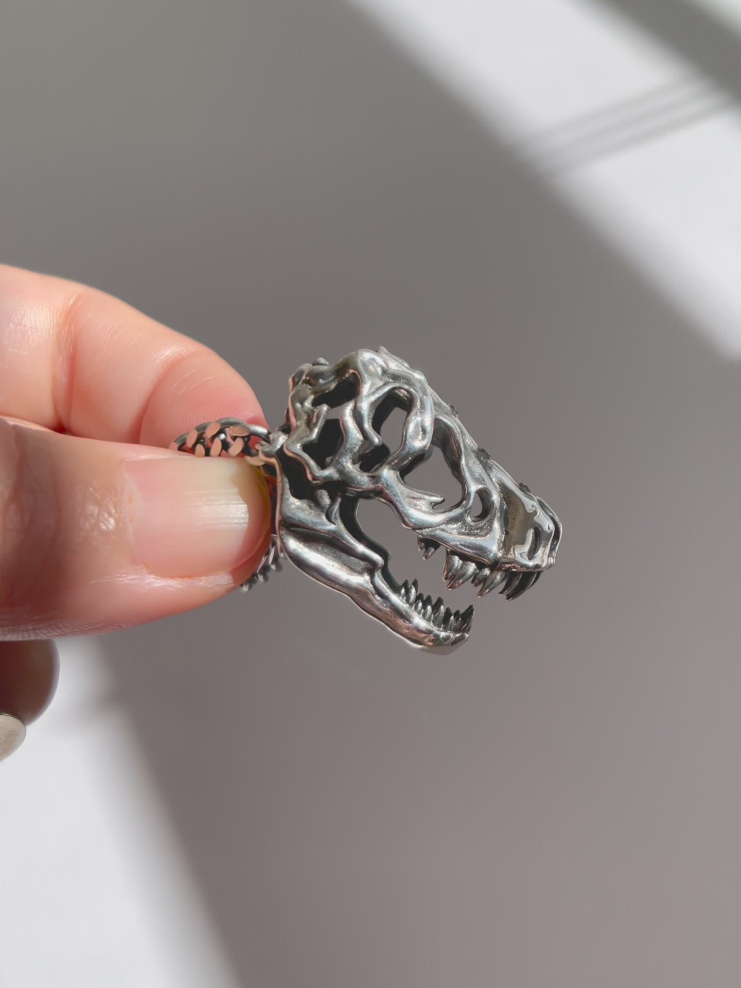 .925 Silver T. rex Skull Necklace